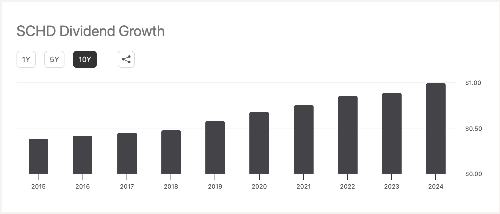 [SCHD의 과거 배당 성장 그래프]